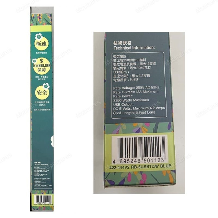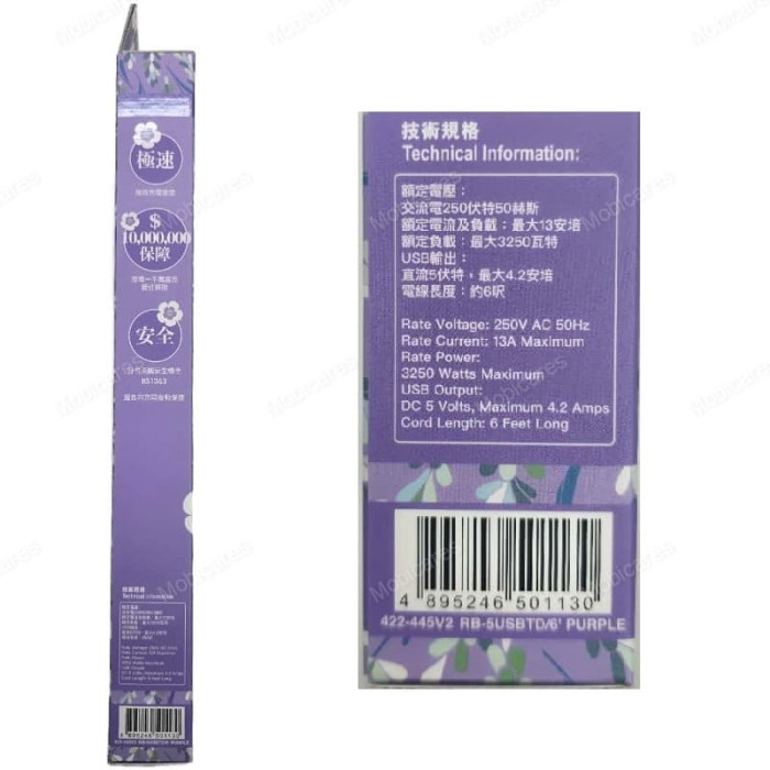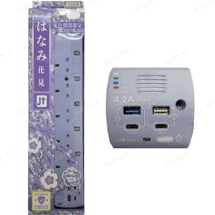 MEC x JT - RB-5USBTD/6" Power Strips | Power Bar | 5position independent switch + 2 x USB + 2 x Type-C + USB Timer (4.2A / 6 feet) | [Limited Edition - Boxed] | 2 colors select