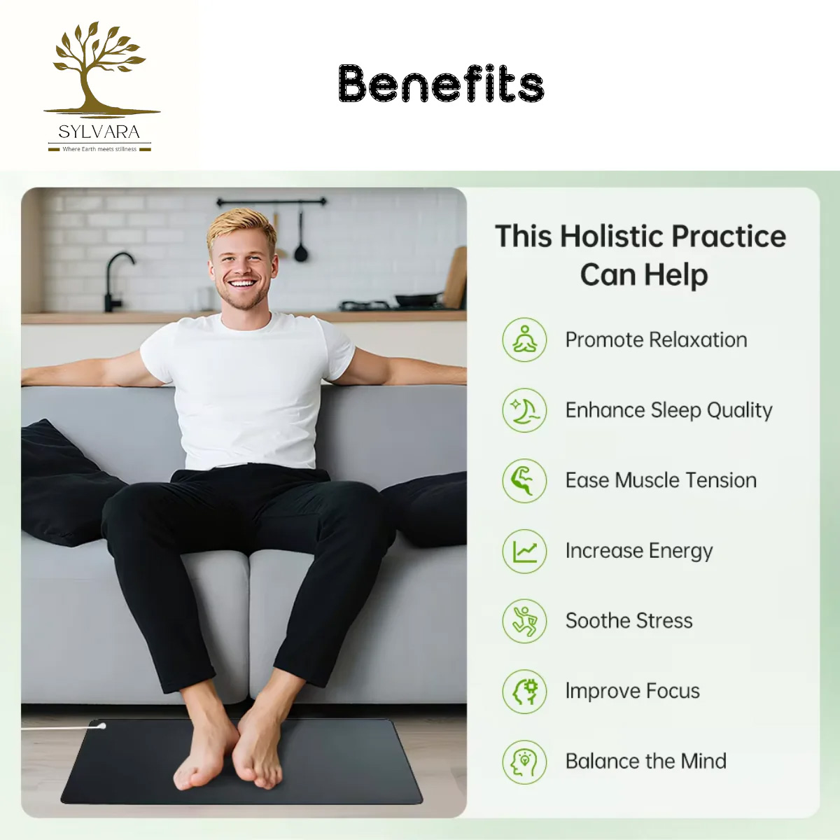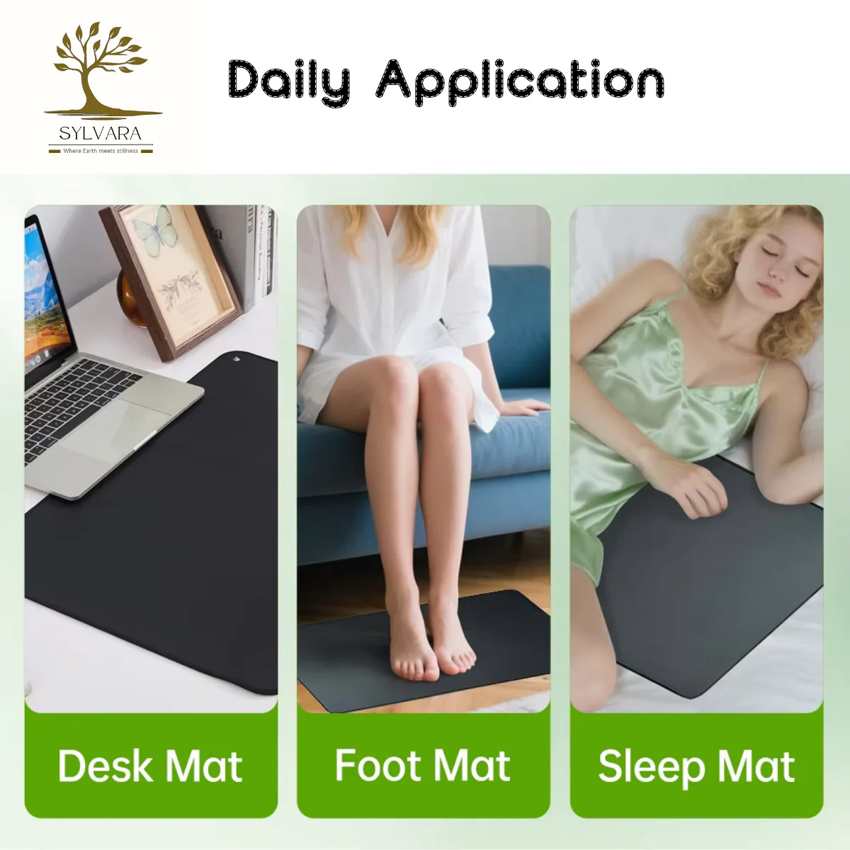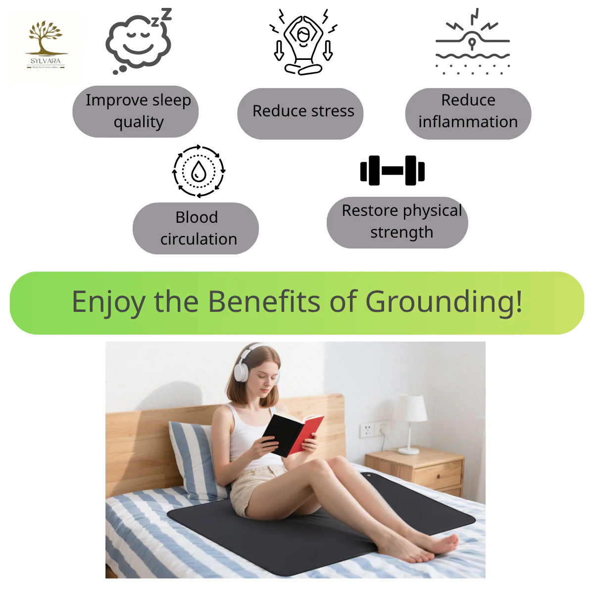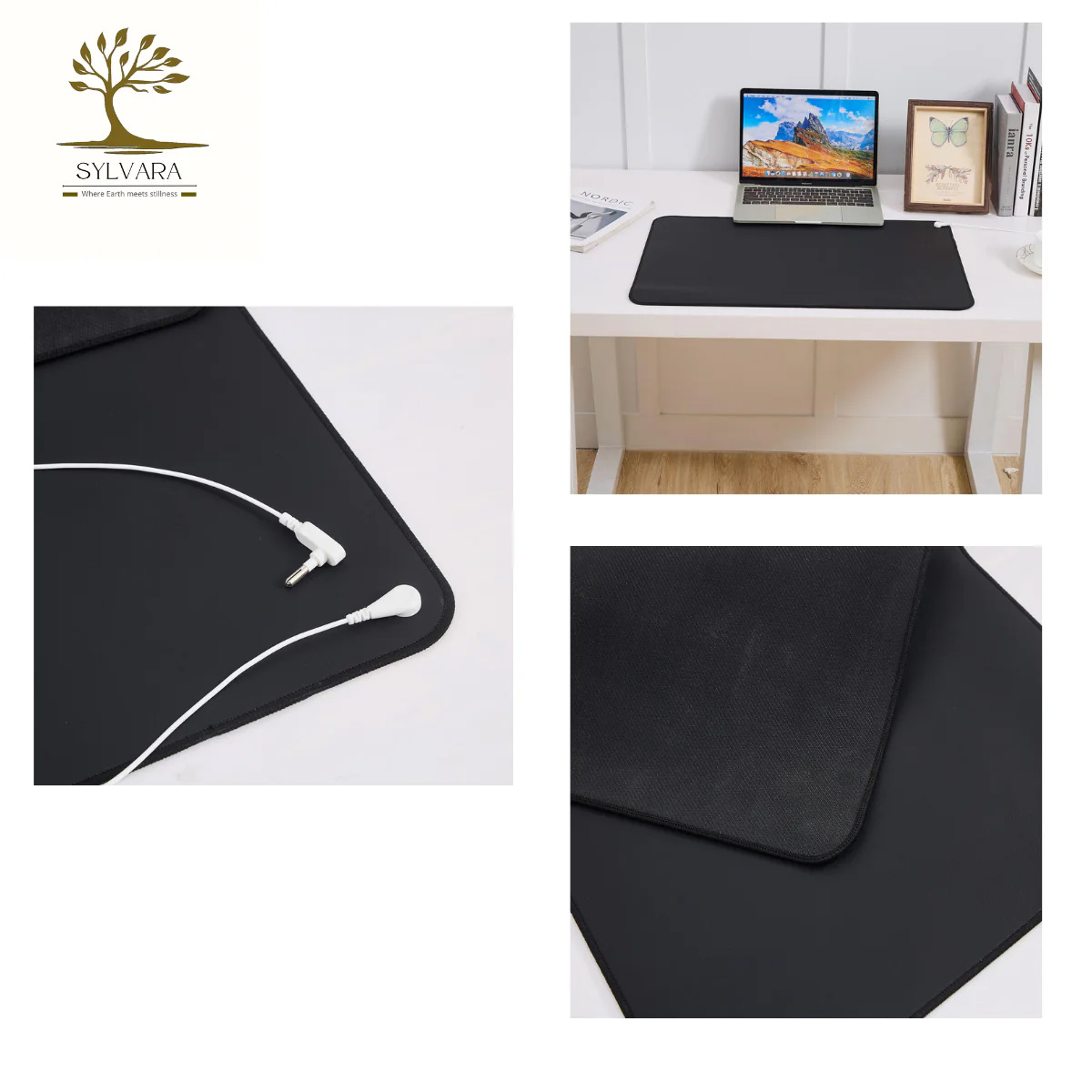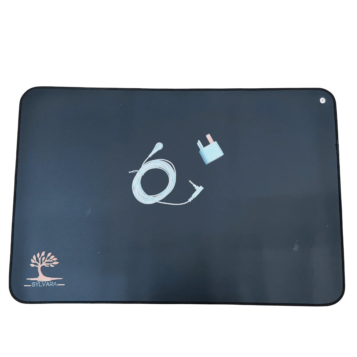 The Sylvara grounding mat comes with a dedicated power cord: one end has a round pin that inserts into the designated grounding hole, while the908 other end connects to the mat itself via a special snap buckle.