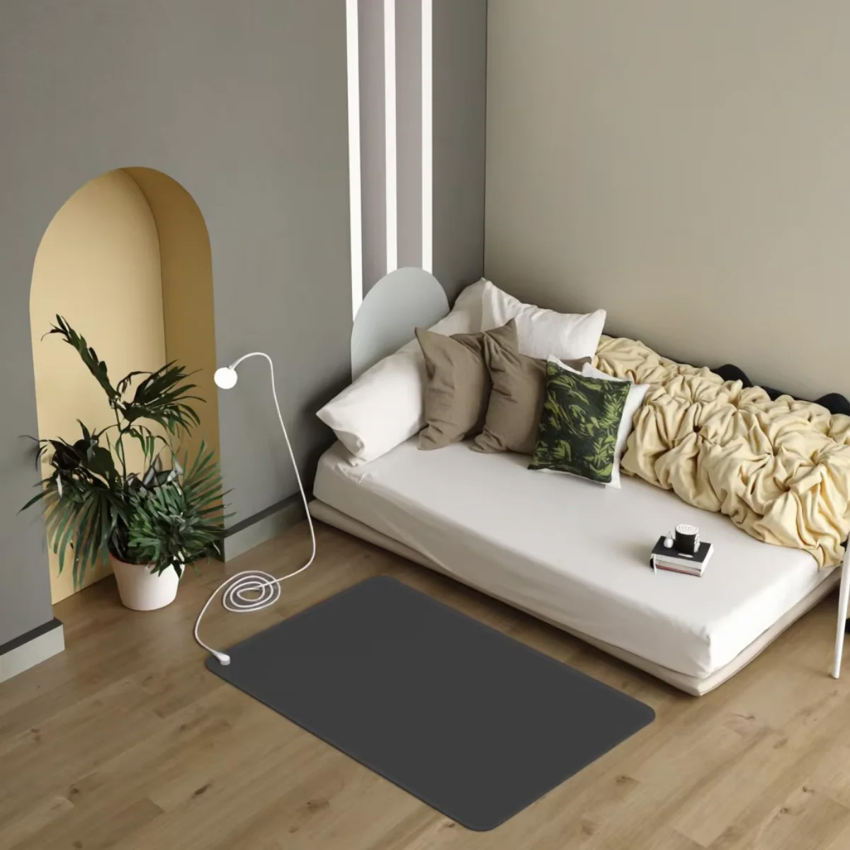 After plugging the grounding mat into a power outlet via the cord, it immediately becomes grounded. The mat acts like an extension cord, bringing Earth's energy indoors, allowing you to stay grounded while relaxing or working—just like walking barefoot outdoors.