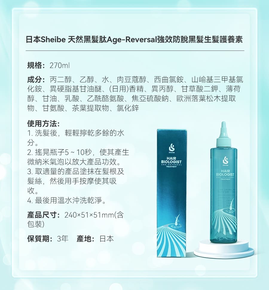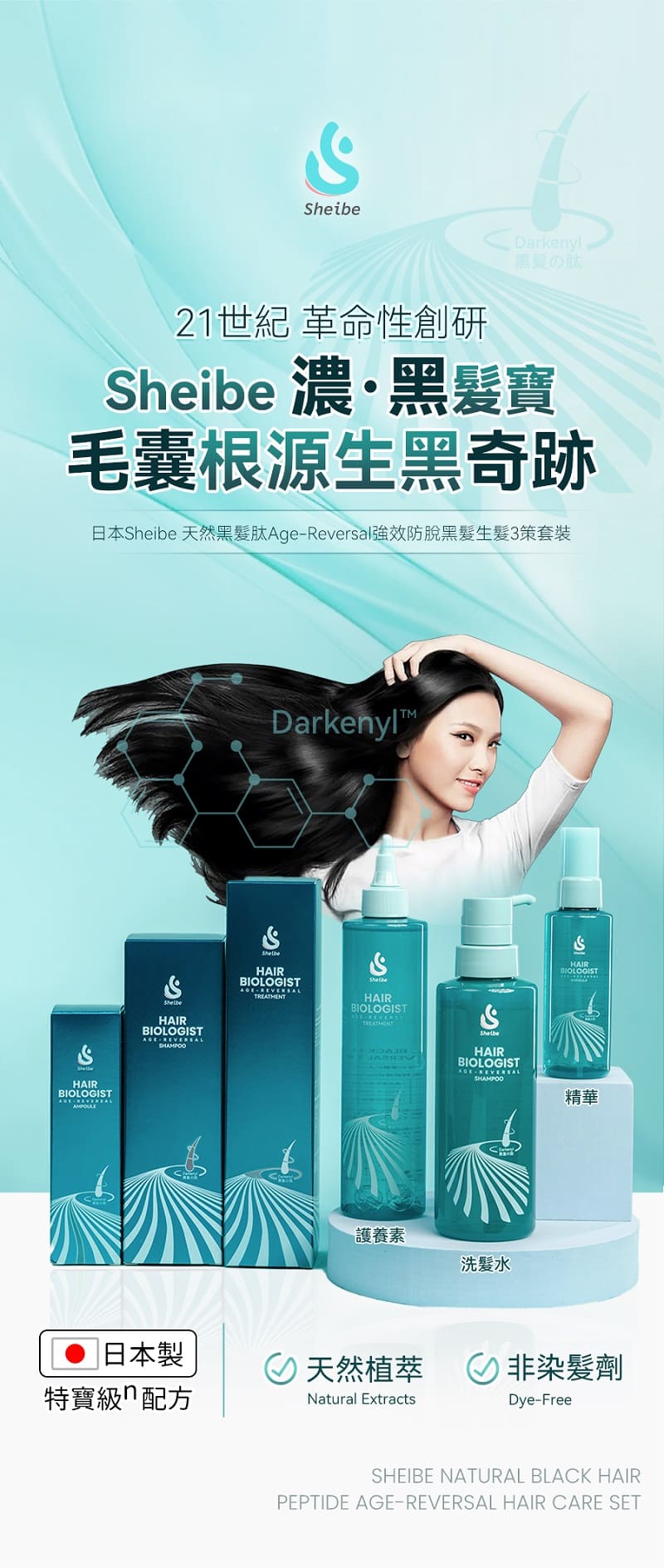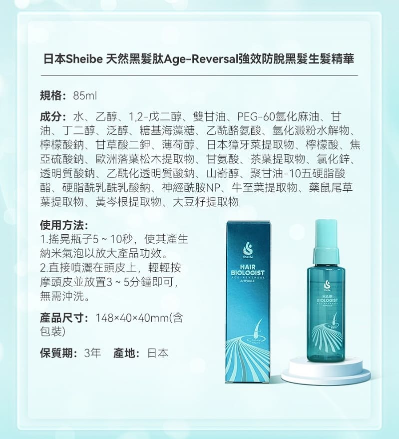 Sheibe Natural Black Hair Peptide Age-Reversal Ampoule: 85ml | Serum | Made in Japan