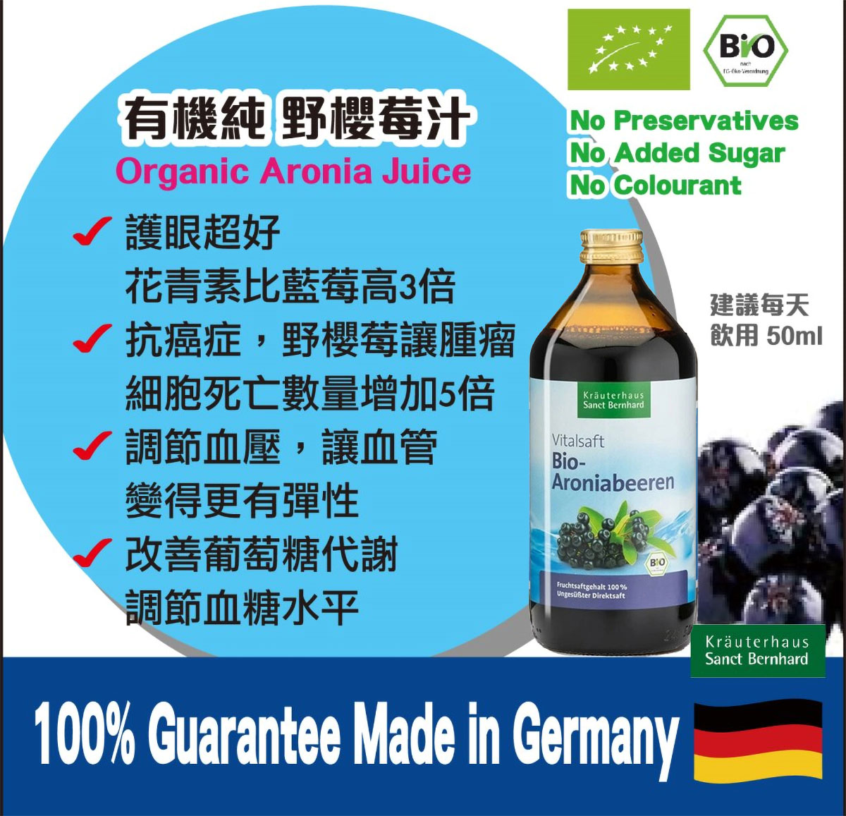 Sanct Bernhard 德國 有機純野櫻莓汁 500ml | 100%純有機果汁| 無添加糖及水份 | 德國製造
